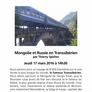 conférence: Le Transsibérien, à Châtelaine