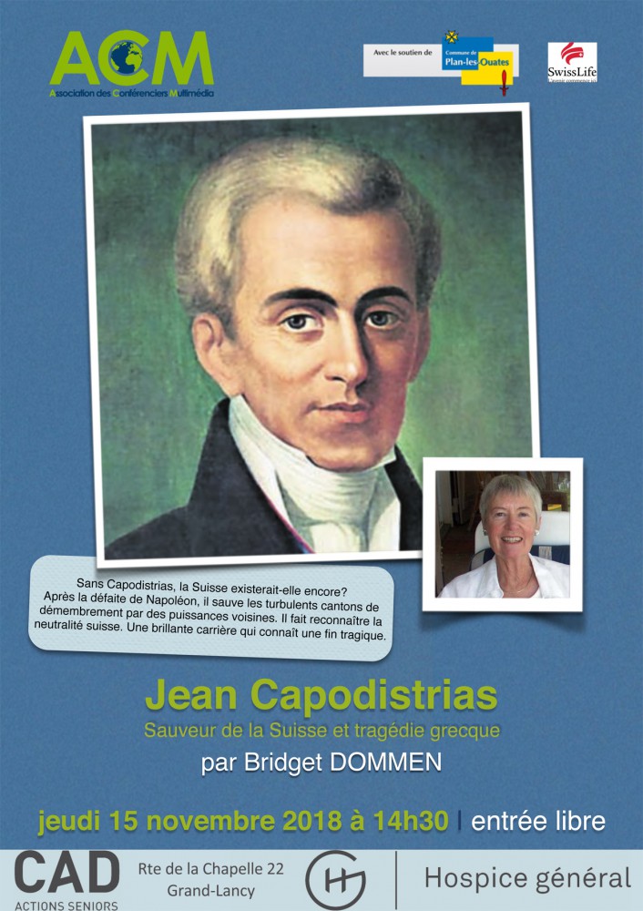Sans Capodistrias, la Suisse existerait-elle encore? Après la défaite de Napoléon, il sauve les turbulents cantons de démembrement par des puissances voisines. Il fait reconnaître la neutralité suisse. Une brillante carrière qui connaît une fin tragique.