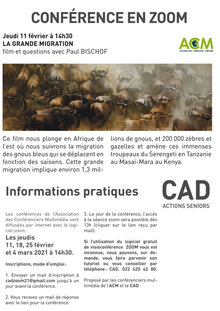Cette conférence en ligne nous plonge en Afrique de l'est où nous suivrons la migration des gnous bleus qui se déplacent en fonction des saisons. Cette grande migration implique 1,3 millions de gnous, et 200 000 zèbres et gazelles et amène ces immenses troupeaux du Serengeti en Tanzanie au Masaï-Mara au Kenya.